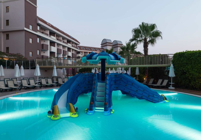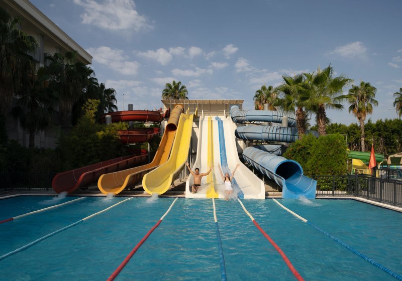 - Aquapark & Pools: Mehrere Süßwasserpools plus Rutschen für dynamische Tage.