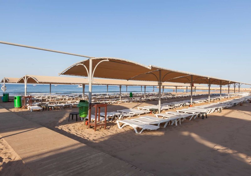 - Strandsetup: Liegen, Schirme, Tücher und Shuttle bis an den Strand.