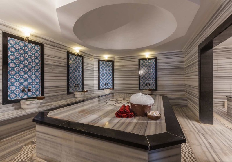 - Hammam & Sauna: Türkisches Bad, Sauna und Hallenbad ergänzen den Strandtag.