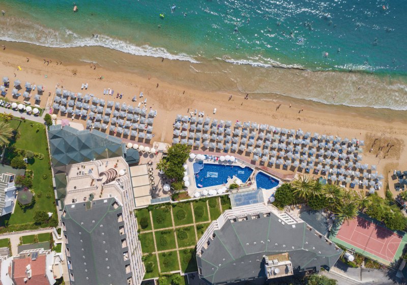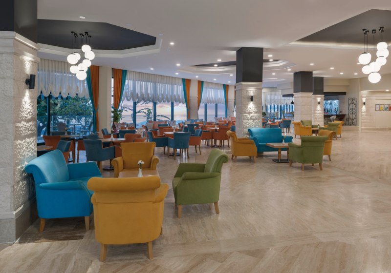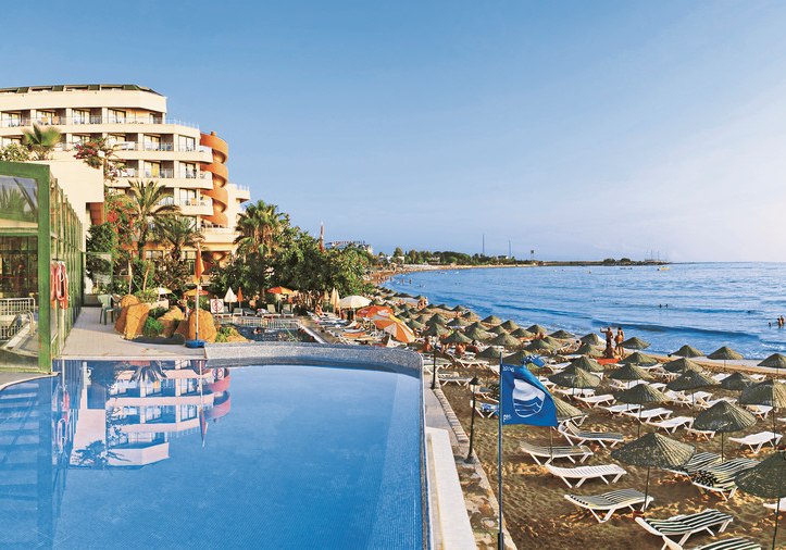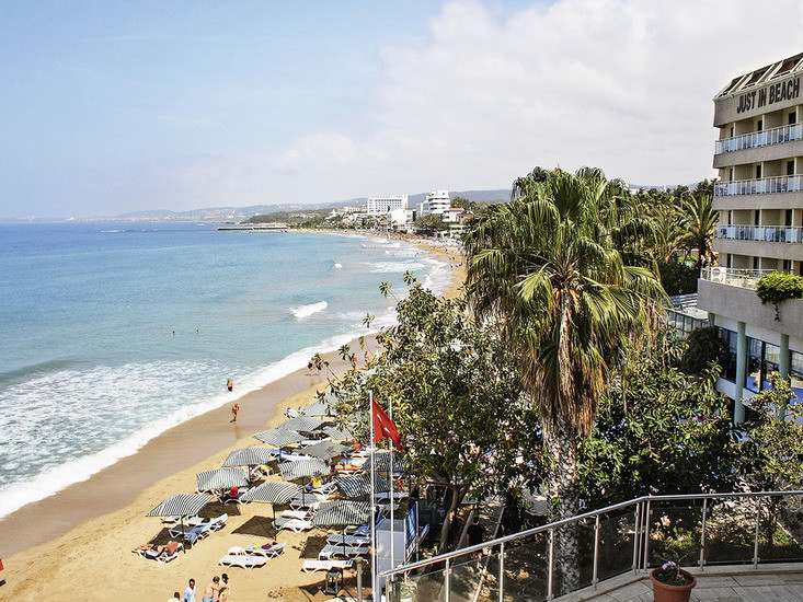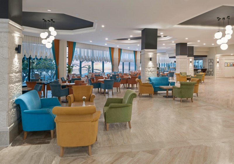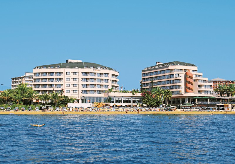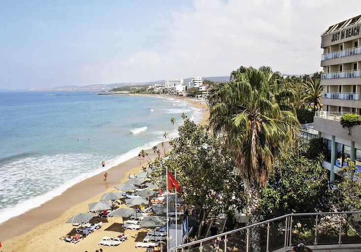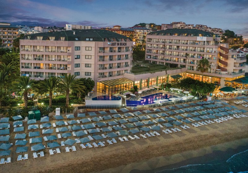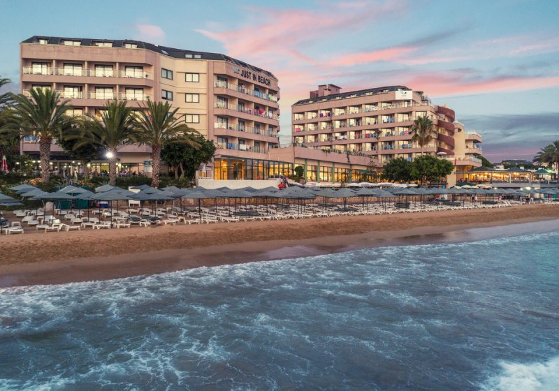 Im Aska Just In Beach wohnt Ihr direkt am flach abfallenden Sandstrand von Avsallar und startet jeden Tag mit der ruhigen Brandung als Grundrauschen. Zwei Hauptgebäude und ein Nebengebäude bilden ein kompaktes Ensemble, das kurze Wege ermöglicht. Der Stil ist funktional, die Atmosphäre ungezwungen. Familien fühlen sich dank separatem Kinderbecken und Miniclub gut aufgehoben, während Paare den direkten Strandzugang und die Terrassenplätze mit Blick auf das Wasser schätzen.