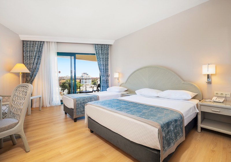 • Klimaanlage • Balkon (je nach Zimmerkategorie) • Kühlschrank • Haartrockner • Minibar (gegen Gebühr, kostenfrei) • Telefon • Safe (gegen Gebühr) • Meerblick (je nach Zimmerkategorie: seitlich) • Raucherzimmer • Terrasse • Fernseher (gegen Gebühr) • rollstuhlgerechte Zimmer (auf Anfrage) • WiFi (gegen Gebühr)