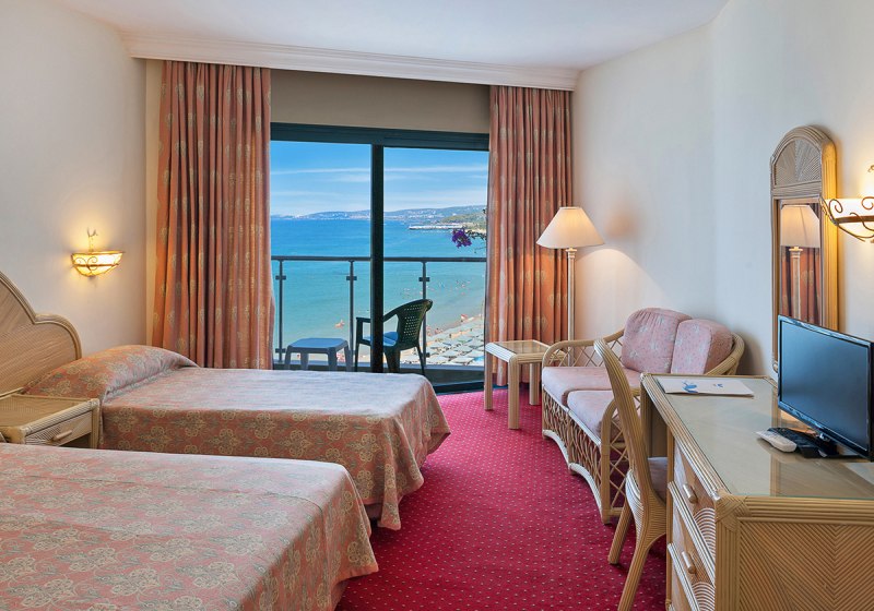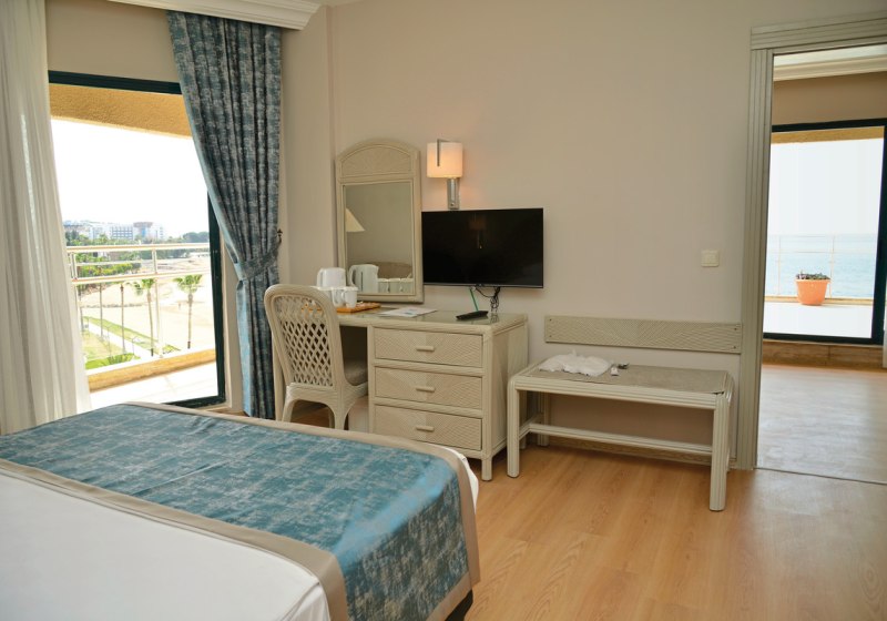 Für Familien eignen sich Zimmer mit zwei Schlafräumen und Verbindungstür. Ihr entscheidet zwischen seitlichem oder direktem Meerblick, wenn Ihr die Nähe zum Wasser im Blick behalten möchtet. Alternativ liegen Zimmer ruhiger zum Gelände. Die Palette reicht von Twin- über Doppel- bis Kingsize-Betten; Zustell- und Kinderbetten sind vorgesehen. So findet Ihr eine passende, klare Raumbasis für Strandtage.