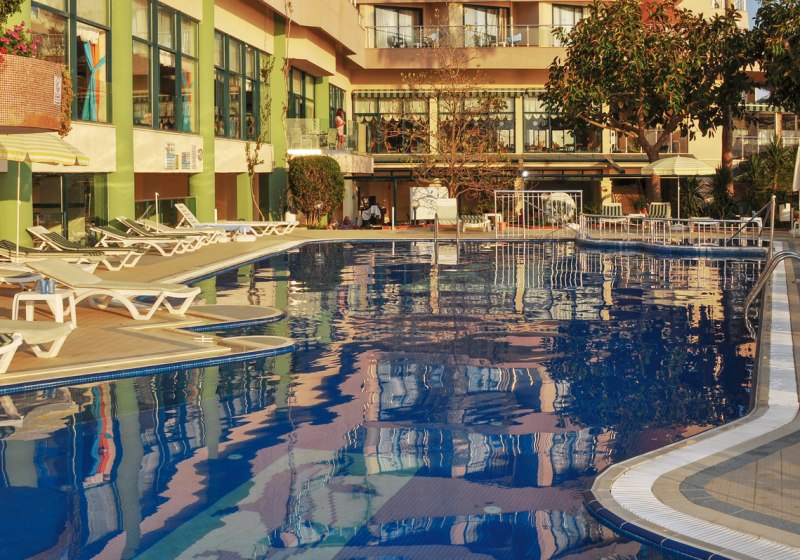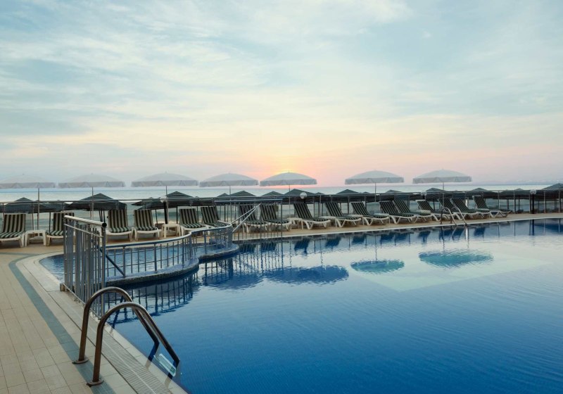 Für reibungslose Abläufe sorgen Rezeption, Gepäckaufbewahrung, Wäscherei- und Zimmerservice sowie ein Late-Check-out-Raum. Wer arbeiten oder sich treffen möchte, nutzt den Konferenzraum. Gartenflächen und Terrassen geben dem Ensemble Luft, abends ergänzt die Diskothek das Angebot. Das Ganze wirkt kompakt organisiert, mit klaren Wegen und einem Fokus auf Strandnähe und Funktionalität.