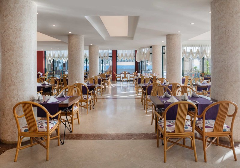 - Terrassenplätze: Hauptrestaurant mit Terrasse verbindet Buffetkomfort und Draußen-Sitzplätze.
