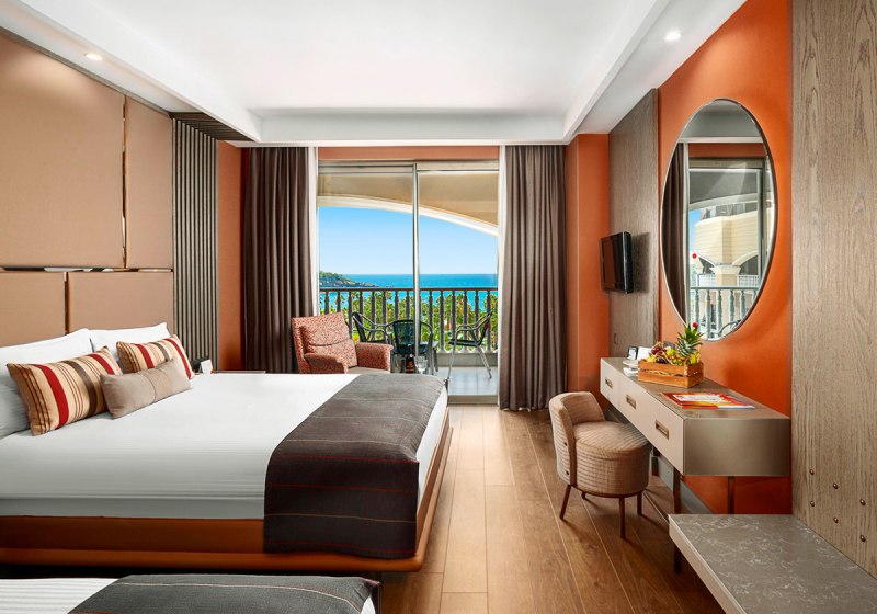 Die Infrastruktur ist umfangreich: Empfangshalle mit Rezeption und Lobby-Sitzecken, WLAN in der gesamten Anlage, Geschäfte, Minimarkt und Friseur. Zwei Konferenzräume bieten Raum für Meetings. Draußen warten Süßwasser-Swimmingpool, Kinderbecken, fünf Wasserrutschen, Sonnenterrasse sowie Liegen, Auflagen, Sonnenschirme und Badetücher an Pool und Strand. Highlight: Vier Panoramaaufzüge verbinden die Bereiche bequem.