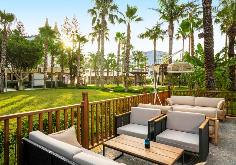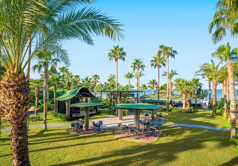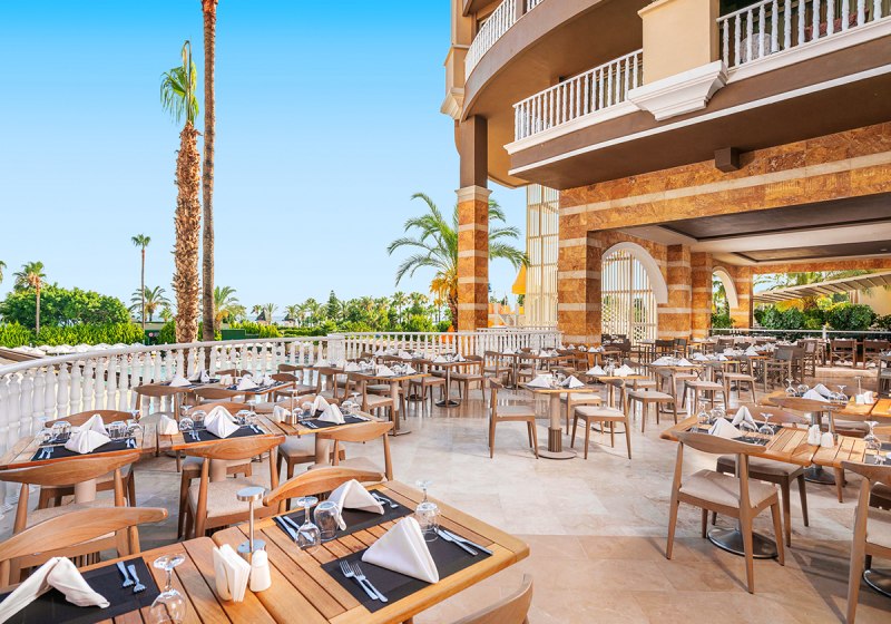 - Hauptterrasse: Terrasse des Hauptrestaurants verbindet Buffetwahl und Außenplätze.