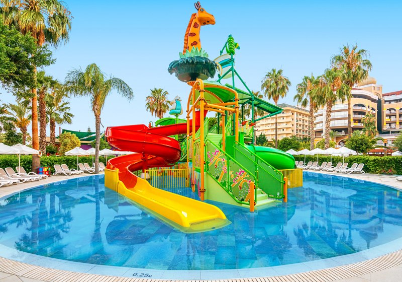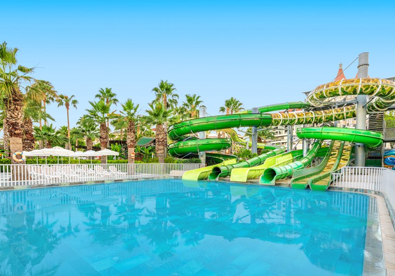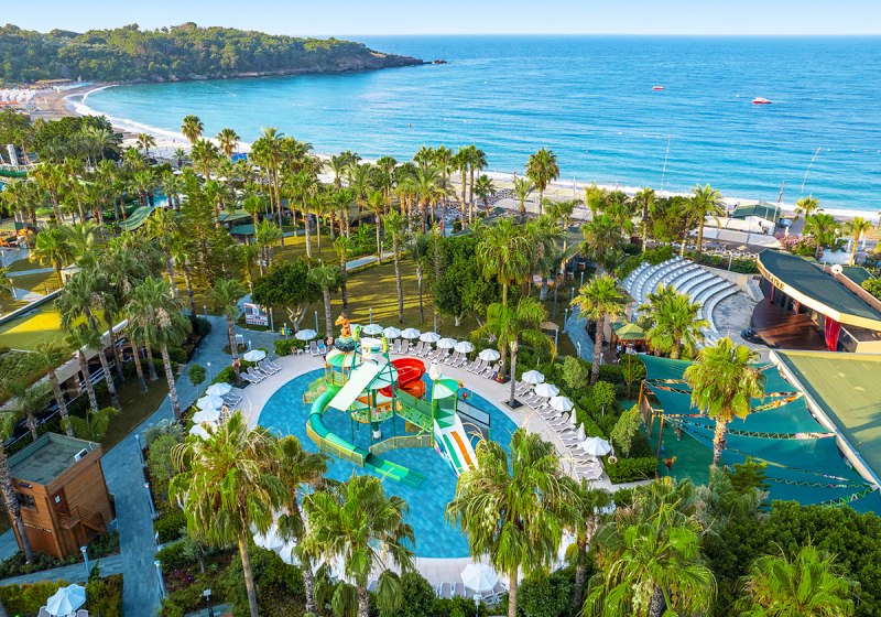 Arycanda Kirman Premium kombiniert direkte Strandlage in Karaburun mit strukturierter Vielfalt: Pool, fünf Wasserrutschen, Amphitheater und All-Inclusive Plus schaffen klare Tages- und Abendlinien. Die Wege bleiben kurz, das Angebot breit, vom Miniclub bis zum Spa. So plant Ihr jeden Abschnitt ohne Umwege.