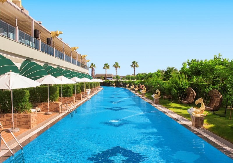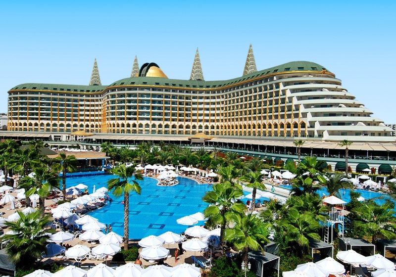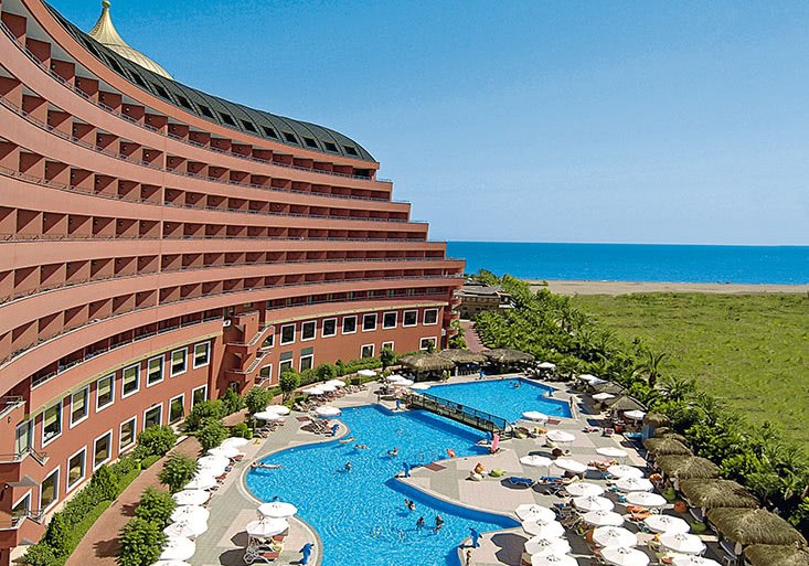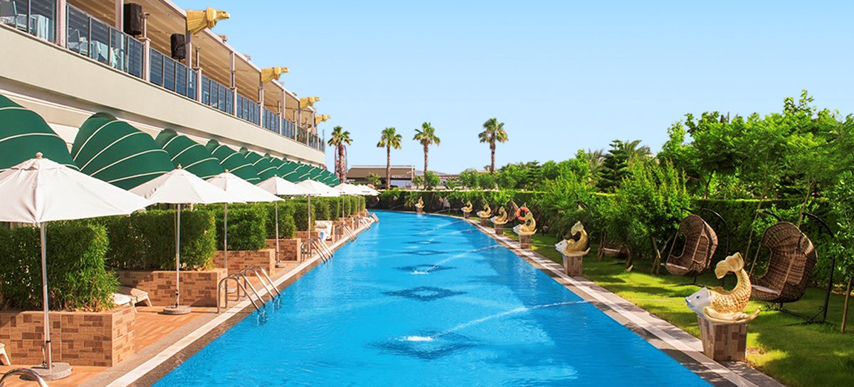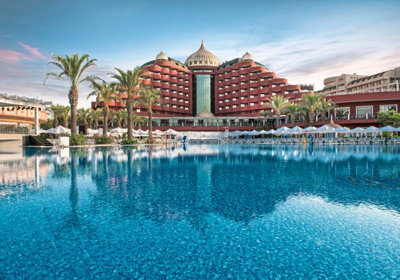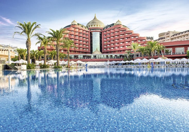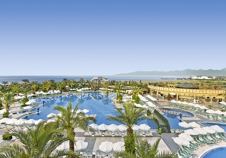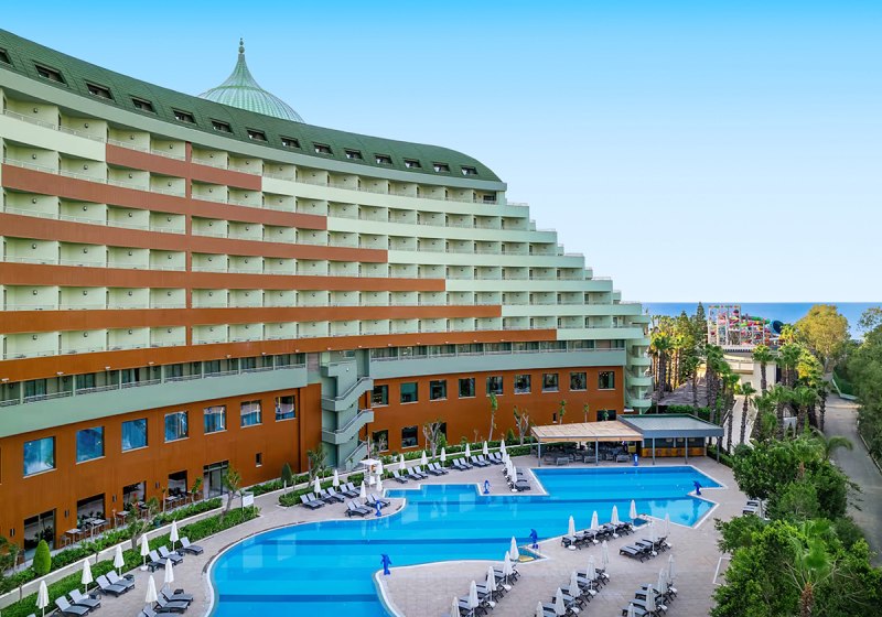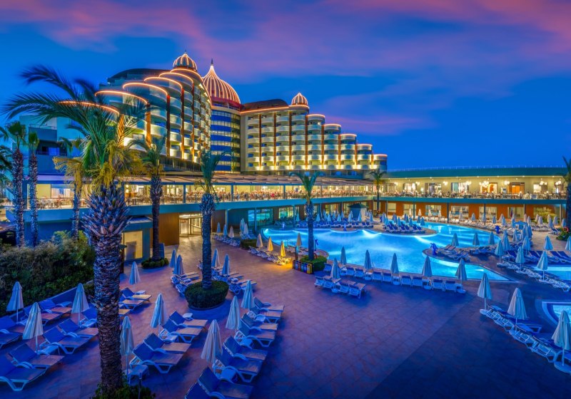 Delphin Palace steht für direkte Strandlage in Lara, eine weitläufige Wasserwelt und klare All‑inclusive‑Strukturen. Familienfreundliche Bereiche, Miniclub und Lunapark treffen auf Abendshows und gelegentliche Livemusik – mit kurzen Wegen zwischen Pool, Strand und Bühne.