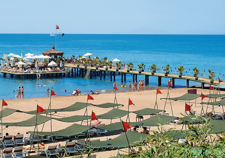 Die Atmosphäre wirkt organisiert, freundlich und wohltuend unkompliziert: kurze Distanzen, viele Sitzbereiche, ein durchdachtes Gastro-Angebot und WLAN in Lobby und Zimmern. Zwischen Miniclub, Lunapark und Abendshows bleibt Raum für ruhige Momente am Meer. Highlight: Direkte Strandlage mit großem Aquapark und abwechslungsreichem Entertainment.