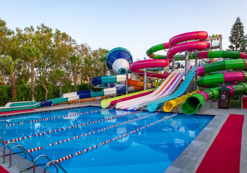 - Wasseraction: Aquapark mit Rutschen als dynamischer Trainingskick.
