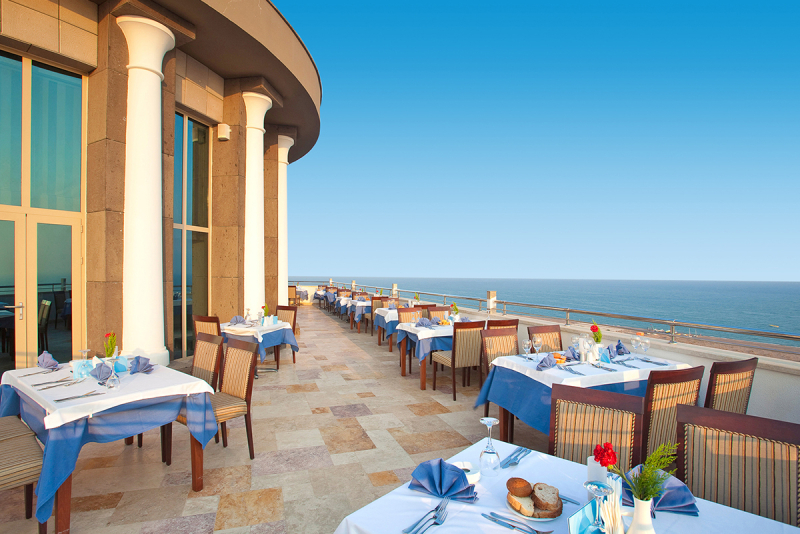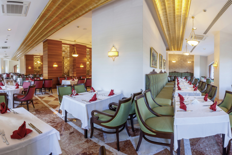 Die Gäste des Melas Lara Hotel erwartet eine umfangreiche gastronomische Auswahl. Das Hotel beherbergt insgesamt vier Restaurants, darunter ein Buffetrestaurant und drei À-la-carte-Restaurants mit internationaler und türkischer Küche. Zudem stehen drei Bars zur Verfügung. Als Verpflegungsleistung ist All Inclusive Ultra buchbar, welches Frühstück, Mittagessen, Abendessen, Snacks und Getränke rund um die Uhr beinhaltet.Ausstattung