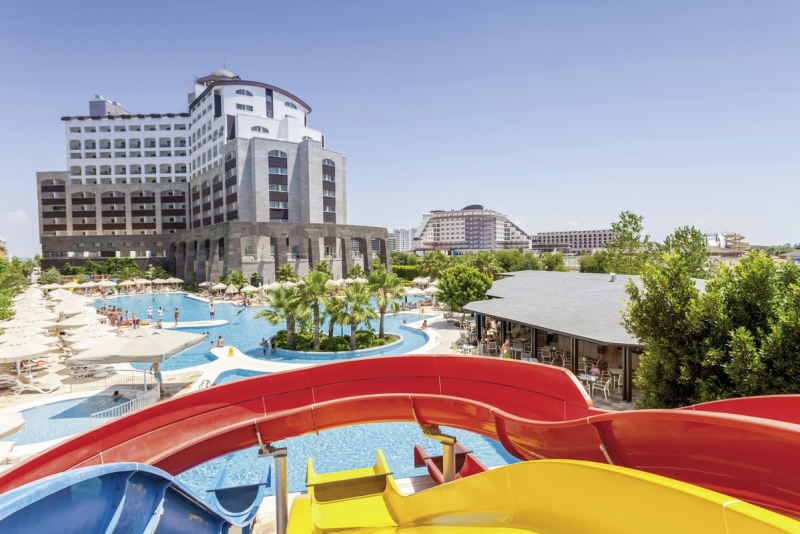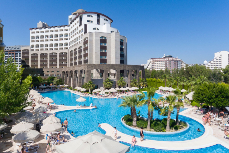 Das Melas Lara Hotel ist ein vorzügliches 5-Sterne-Hotel, welches sich durch seinen hohen Komfort und seinen erstklassigen Service auszeichnet. Mit einer Gesamtzahl von 322 Zimmern auf 12 Stockwerken ausgestattet, bietet es eine einladende Atmosphäre und zahlreiche Annehmlichkeiten, darunter eine Rezeption, die rund um die Uhr besetzt ist, ein Business-Center, eine Vielzahl an Restaurants und Bars, ein Fitness-Studio und ein Spa- und Wellnessbereich. Zusätzlich verfügt das Hotel über einen Miniclub für die kleinen Gäste und bietet eine abwechslungsreiche und unterhaltsame Abendanimation.Bewertung