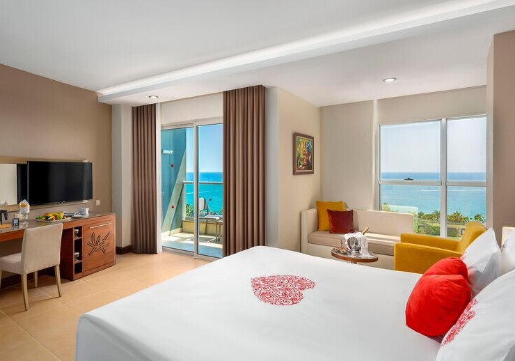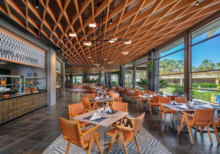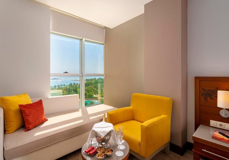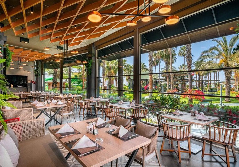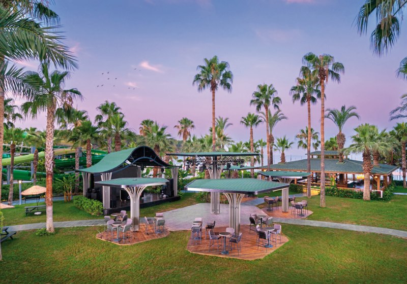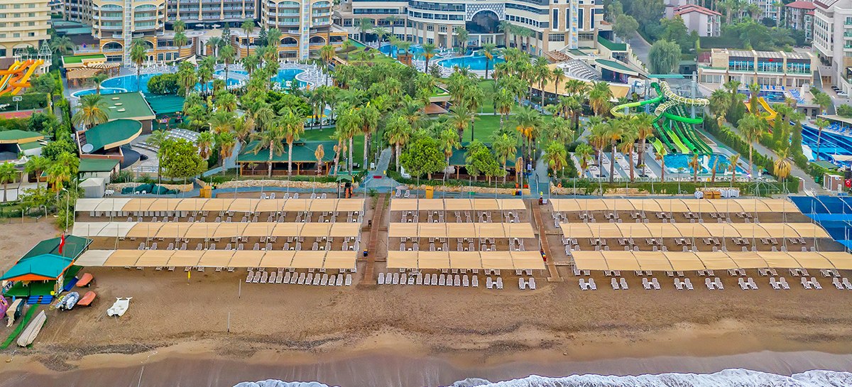 Leodikya Kirman Premium empfängt Euch direkt am Kies- und Sandstrand von Karaburun. Die großzügig angelegte Resortstruktur mit Lobby, Terrassen und Gärten wirkt klar organisiert und lebhaft. Familien, Strandurlauber, Wellnessreisende sowie Paare und Alleinreisende finden hier passende Bereiche. Highlight: Direkte Strandlage mit umfassender Infrastruktur für entspannte Tage am Wasser.