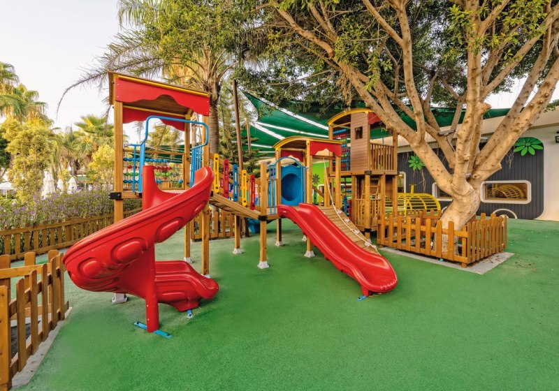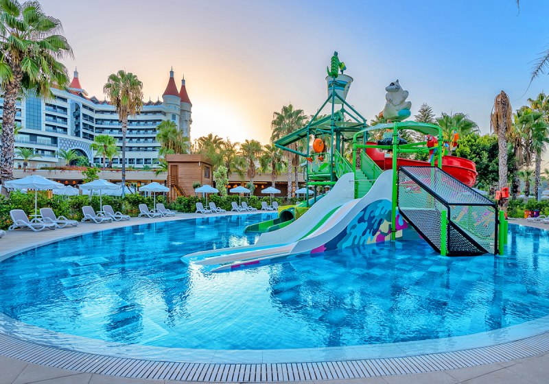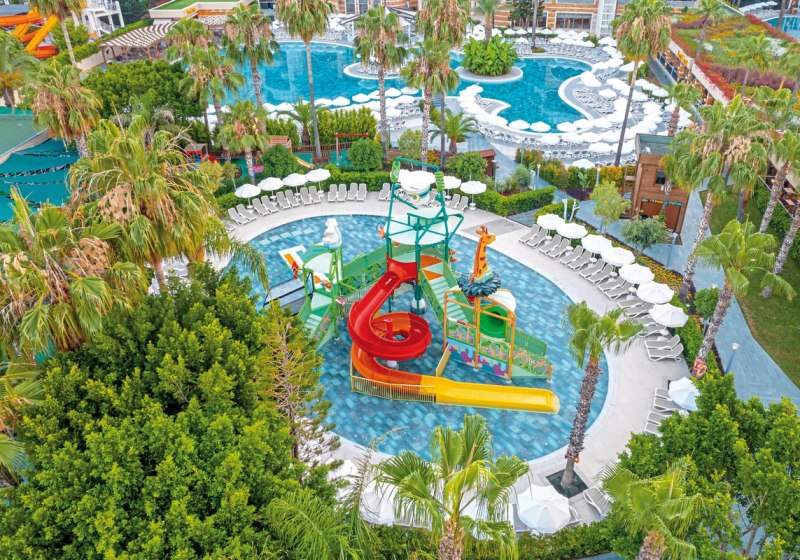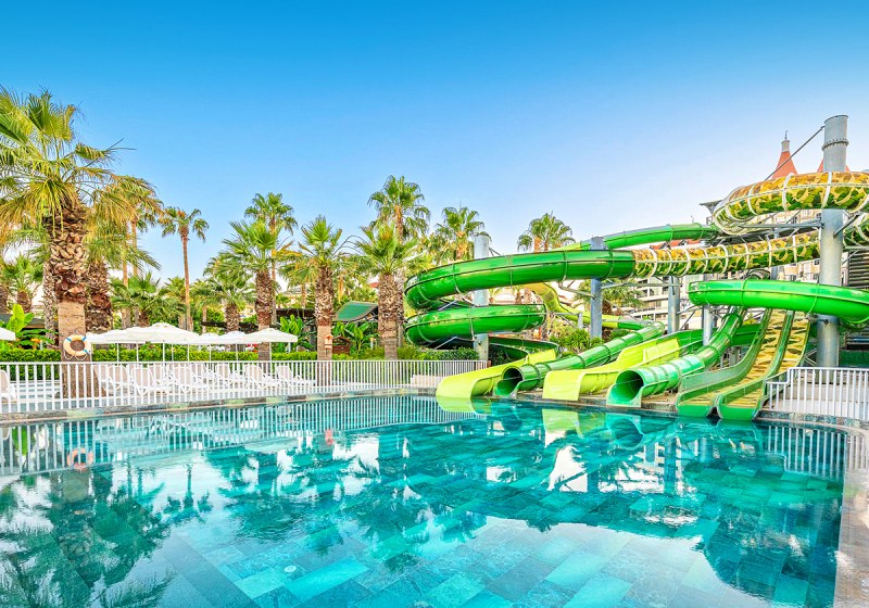 - Rutschenspaß: Poolbereich mit fünf Wasserrutschen und Kinderbecken.