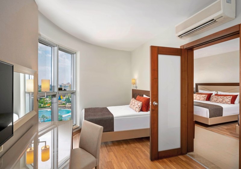 - Familienfreundlich: Kinderbecken und Rutschenpool ergänzen kurze Wege im Resort.
