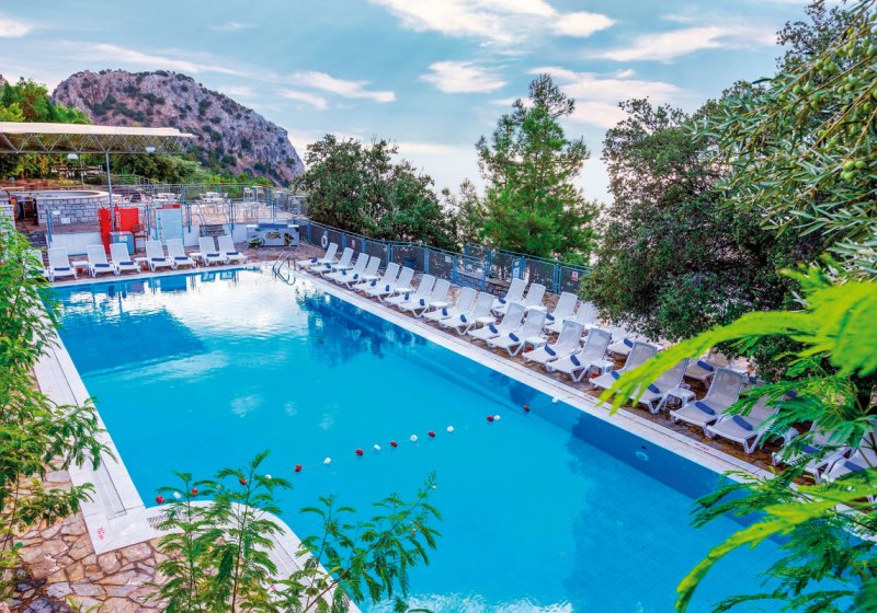 Im Loryma Resort Hotel wohnt Ihr in einer weitläufigen Anlage aus zehn Gebäuden, die seit der Renovierung 2019 einen klaren, gepflegten Eindruck hinterlassen. Die Atmosphäre ist ruhig, die Lage oberhalb von Turunc wirkt entschleunigt und naturnah. Familien, Aktivreisende und Langzeitgäste finden hier Raum und Struktur: 164 Wohneinheiten, Suiten mit separatem Schlafzimmer und Wohnraum, viel Grün, Terrassen und eine großzügige Poolzone. Highlight: Ruhe & Raum. Weitläufige Anlage mit zehn Gebäuden, ideal zum Abschalten.