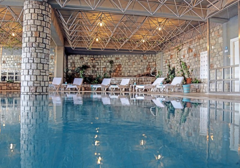 Für ruhige Stunden wechselt Ihr vom Außenbereich in den Spa-Bereich mit Hamam, Sauna und Whirlpool. Das Hallenbad mit Süßwasser ergänzt den Pooltag, besonders angenehm in den kühleren Stunden. Massagen und Anwendungen – darunter Ayurveda, Aromatherapie, Anti-Aging und Fußreflexzonen-Massage – erweitern das Spektrum. Highlight: Wasser & Wärme. Hallenbad, Hamam, Sauna und Whirlpool sorgen für klare Erholung.