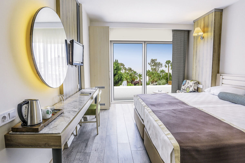 Die Zimmer sind hell und geräumig, mit einem modernen und ansprechenden Design. Sie verfügen über eine individuell regulierbare Klimaanlage, Minibar, Safe, Telefon und Sat.-TV mit deutschen Kanälen. Die Badezimmer sind mit Dusche/WC und Haartrockner ausgestattet. Alle Zimmer bieten einen Balkon oder eine Terrasse.