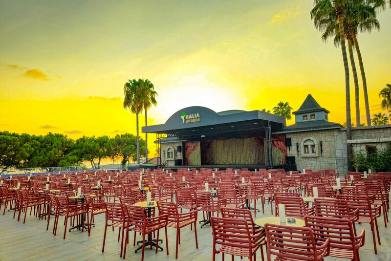 Das Thalia Unique ist ein prächtiges 4-Sterne-Hotel, beliebt bei Stammgästen und neu entdeckenden Besuchern gleichermaßen. Es liegt direkt am wunderschönen, hoteleigenen Sandstrand und bietet Gästen einen großzügigen Badesteg. Das charmante Hotel ist umgeben von satter Vegetation und bietet eine abwechslungsreiche Kulinarik, die einen spannenden Einblick in die türkische Genusswelt gewährt. Erkunden Sie das hoteleigene Spa-Center, genießen Sie verschiedene Wassersportarten oder entspannen Sie einfach an einem der Pools. Mit 233 Zimmern und unzähligen Unterhaltungsmöglichkeiten ist das Thalia Unique bestrebt, allen Gästen ein unvergessliches Erlebnis zu bieten.Bewertung