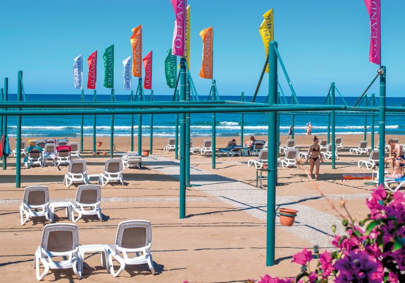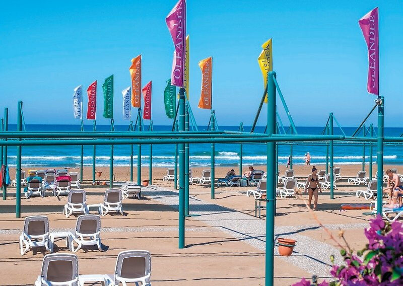 Im Hotel Oleander wohnt Ihr in drei f5nfgeschossigen Geb23uden direkt am breiten, flach abfallenden Sandstrand von Kumkf6y. Die weitle4ufige Gartenanlage mit Sonnenterrassen, zwei Sfcdfwasserpools und Wasserrutsche ffchlt sich fcbersichtlich und angenehm an. Familien finden mit Miniclub und dem 500 mb2 grodfen abWonderlandbb viele Spielfle4chen, we4hrend Ruhesuchende zwischen Pool und Strand entspannt wechseln.