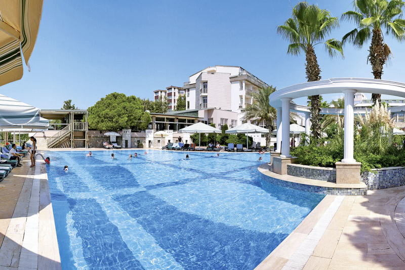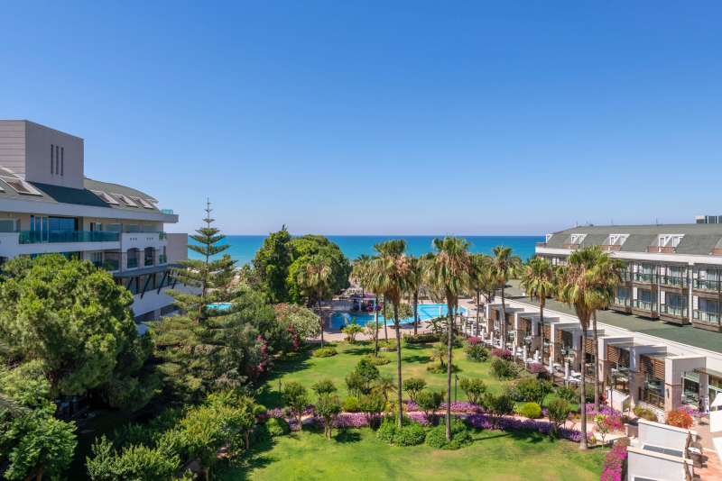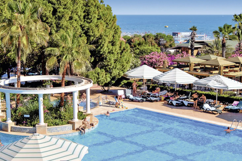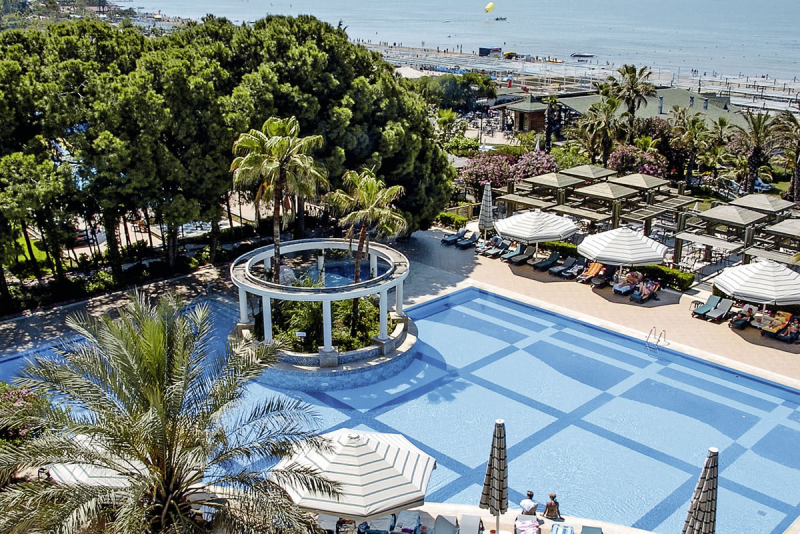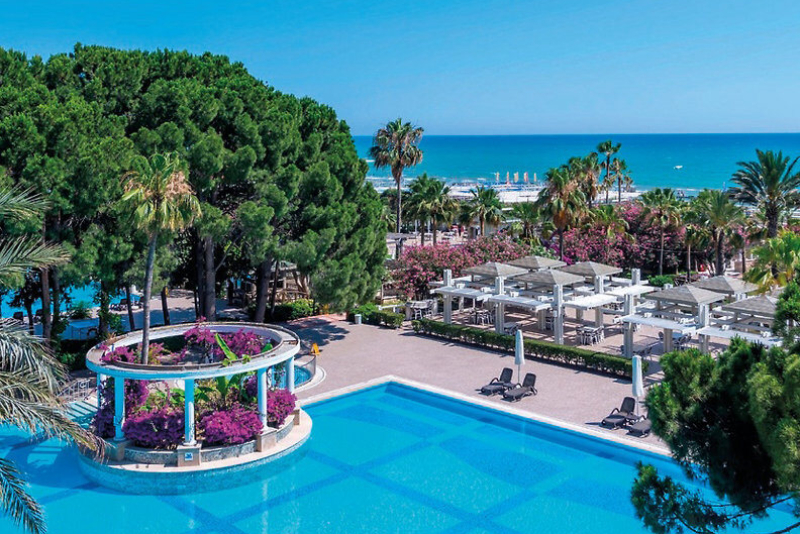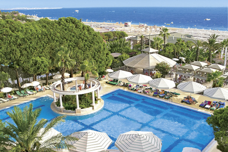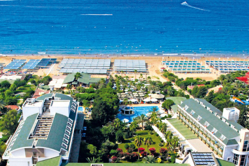 Die Lage des Hotels ist ideal für alle, die sowohl die Ruhe am Strand, als auch den Trubel der Stadt genießen wollen. Es liegt direkt am hoteleigenen Sandstrand und ist nur rund 5 km von der Stadt Side und 10 km vom Stadt-/Ortszentrum entfernt. Auch zum Flughafen Antalya (AYT) ist es mit 65 km nicht weit. Für Unterhaltung und Einkaufsmöglichkeiten müssen Gäste nur etwa 300 m zurücklegen.