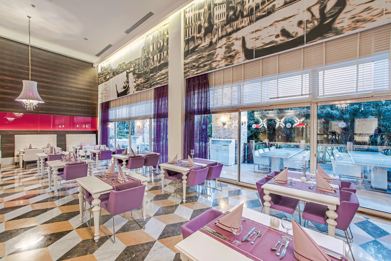 Für das leibliche Wohl ist gesorgt mit verschiedenen Restaurants und Bars. Es gibt 3 Restaurants in der Anlage und 4 Bars, darunter eine Lobbybar, eine Poolbar, eine Hotelbar und eine Strandbar. Im All-Inclusive Paket sind Frühstück, Mittag- und Abendessen in Buffetform inbegriffen, dazu Kaffee, Kuchen und Snacks tagsüber. Ebenfalls inklusive sind ausgewählte lokale alkoholische und nichtalkoholische Getränke.Ausstattung