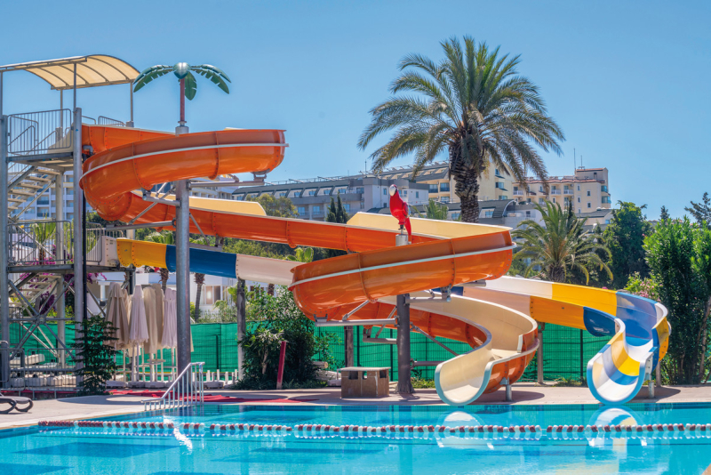 Die Ausstattung des Hotels lässt keine Wünsche offen. Es bietet unter anderem eine Empfangshalle, WLAN in allen öffentlichen Bereichen, einen Fitnessraum, Friseur, Minimarkt, und Diskothek im Außenbereich. Zur Außenanlage gehören eine Liegewiese, Sonnenterrasse und zwei Swimmingpools mit Liegen und Sonnenschirmen, die sowohl am Pool als auch am Strand zur Verfügung stehen. Außerdem gibt es einen Spielplatz und ein Spielzimmer für Kinder.