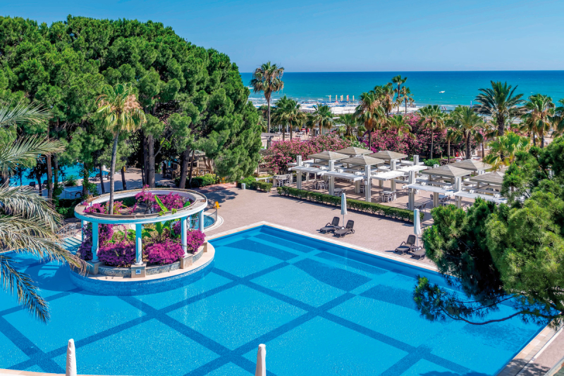 Das Hotel Oleander ist ein exzellentes, 5-Sterne-Hotel, bei den Stammgästen sehr beliebt und liegt direkt am hoteleigenen Sandstrand. Mit seinen insgesamt 330 Zimmern bietet es ausreichend Platz. Das Hotel besticht durch sein weitläufiges, liebevoll gestaltetes Gelände und den Beach. Besonders hervorzuheben ist das große Spielparadies für Kinder, sowie die Roof Top Bar, die eine atemberaubende Aussicht bietet. Vor allem für Familien ist dieses Paradies optimal geeignet.Bewertung