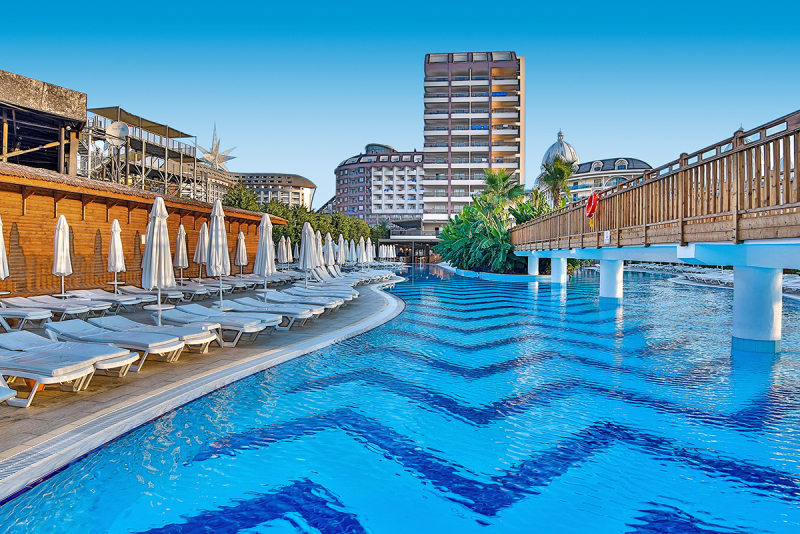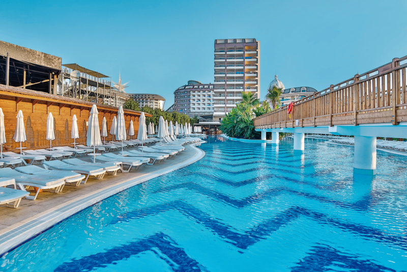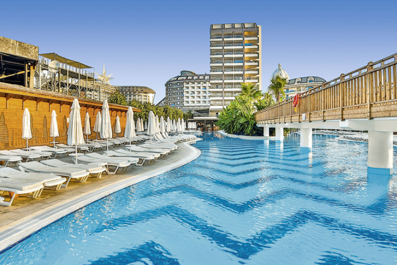 Nur 20 Kilometer vom Zentrum Antalyas entfernt empfängt Sie das Saturn Palace Resort. Das großzügige Luxushotel liegt direkt an der Strandpromenade. Es verfügt über eine fantastische Bade-Landschaft und einen eigenen Strandabschnitt.Zimmer und Unterbringung