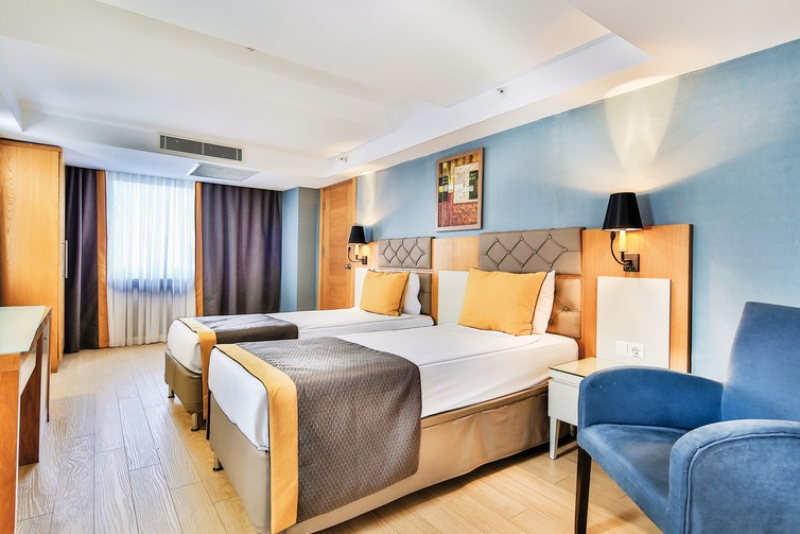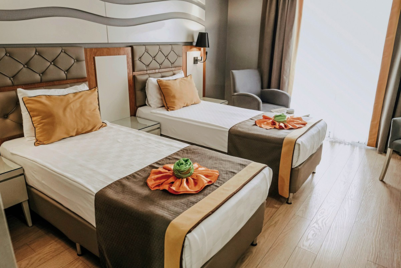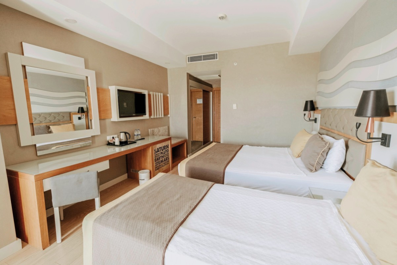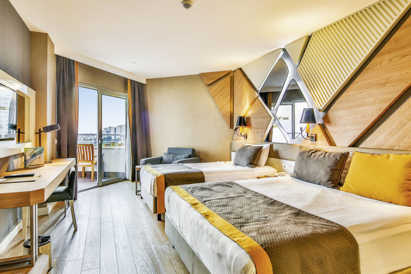 Im Saturn Palace Resort wohnen Sie wahlweise in Doppelzimmern mit Meer- oder Bergblick. Familienzimmer für bis zu drei Personen haben Bergblick. Ihre Unterkünfte sind modern und mit schönen Farben sowie Holz geschmackvoll ausgestattet. Freuen Sie sich auf eine Minibar, eine Klimaanlage, kostenfreies WLAN sowie Pflegeprodukte im Bad. Auch eine gemütliche Sitzecke, ein Schreibtisch und ein Flachbild-TV sind vorhanden. Premium-Doppelzimmer punkten mit größerer Terrasse und eigener Whirlpool-Badewanne. Hier sind auch bequeme Sonnenliegen vorhanden. Familienzimmer sind 40 Quadratmeter groß. Sie haben zwei französische Doppelbetten und ein Einzelbett.Gastronomie und Restaurants