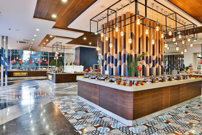 In diesem Resort nehmen Sie Ihr Essen am Buffet ein. Es erwarten Sie großzügige Terrassen und Essbereiche. Alle sind modern und nach einem überzeugenden Farbkonzept gestaltet. Ferner können Sie sich kulinarisch auch in À-la-carte-Restaurants verwöhnen lassen. Soft-Getränke, Eis und Snacks nehmen Sie im Saturn Palace Resort an der Bar ein.Sport, Unterhaltung und Pool
