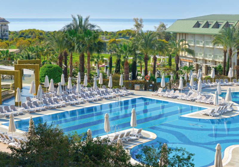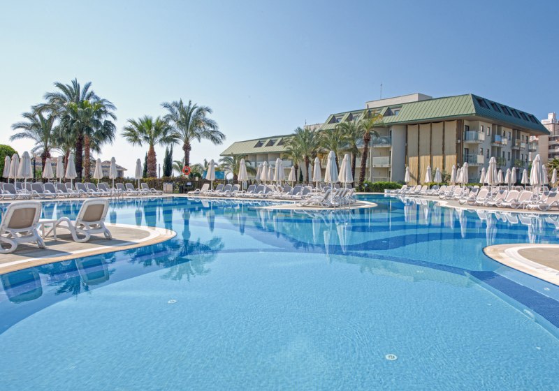 Ihr wohnt in Colakli, nur etwa 200 Meter vom hoteleigenen Sandstrand und gleicher Distanz zu Einkaufs- und Unterhaltungsmöglichkeiten. Die Lage ist alltagsnah, ohne vom Strandgefühl abzurücken. Wer Kultur und Hafenflair sucht, erreicht Side nach rund 11 Kilometern. Zum Flughafen Antalya sind es ungefähr 55 Kilometer, die An- und Abreise bleibt planbar.