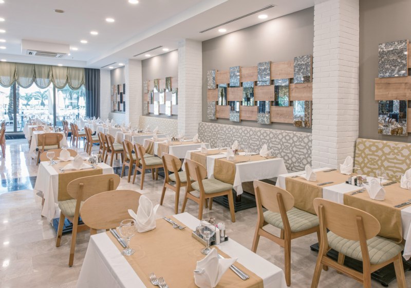 Das kulinarische Zentrum ist das Buffetrestaurant mit Terrasse. Ihr wählt aus All-inclusive-Angeboten mit Frühstück, Mittag- und Abendessen, ergänzt um Live-Kochen zu ausgewählten Zeiten. Vegetarische Kost und glutenfreie Mahlzeiten sind vorgesehen, sodass Ihr Eure Vorlieben klar abbildet. Für Abwechslung sorgt zusätzlich ein À-la-carte-Restaurant.