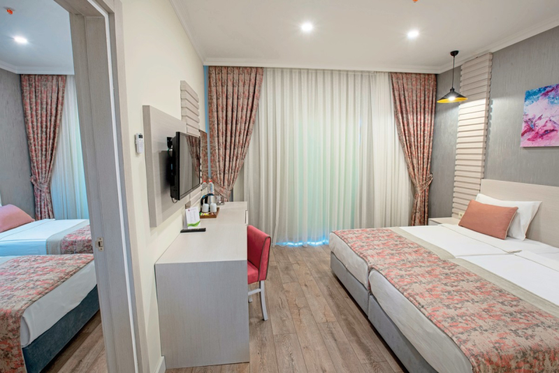 Die Zimmer sind 20-25 qm groß, verfügen über ein Badezimmer mit WC, einen Balkon, Sat-TV und eine Klimaanlage. Es gibt auch Familienzimmer mit zwei Schlafzimmern und einer Größe von etwa 54 qm.