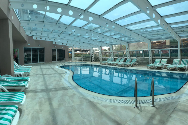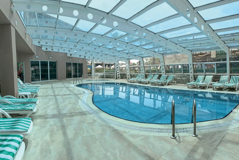 Die Ausstattung des Side Lilyum Hotels & Spas ist umfangreich und komfortabel. Es verfügt über einen Außenpool, Kinderpool und sogar eine Wasserrutsche. Liegestühle und Sonnenschirme sind sowohl am Pool als auch am Strand inklusive. In den öffentlichen Bereichen steht den Gästen kostenloses WLAN zur Verfügung.