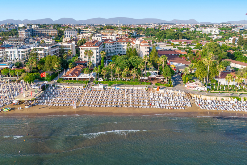 Sie werden die hervorragende Lage des Hotels schätzen. Es befindet sich direkt am Strand und ist nur durch die Uferpromenade davon getrennt. Nur 50m entfernt finden Sie den flach abfallenden, hoteleigenen Sandstrand. Zudem ist das Hotel nur 65 km vom Flughafen Antalya entfernt und bietet leichten Zugang zu Restaurants/Bars, Stadt-/Ortszentrum und dem Ort Manavgat.