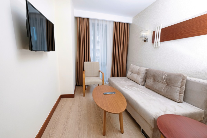 Das Hotel hat eine Vielzahl von Zimmern zur Auswahl, darunter Doppelzimmer, Familiensuiten und Juniorensuiten, alle mit einer Vielzahl von Annehmlichkeiten ausgestattet. Dazu gehören unter anderem ein Bademantel, Badezimmer, Teppichboden, Minibar, WLAN und ein Fernseher. Viele Zimmer bieten auch einen atemberaubenden Meerblick.