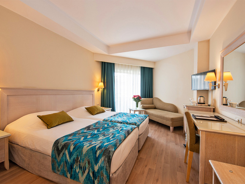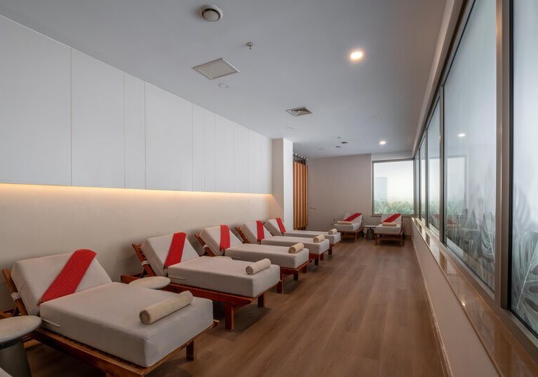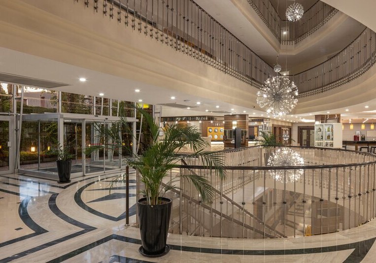 Das Resort umfasst 228 Zimmer, verteilt auf ein fünfstöckiges Haupthaus und ein vierstöckiges Nebengebäude; Aufzüge sind in beiden vorhanden. Rezeption und Lobby bilden das Herz, mit WLAN in den Hotelbereichen und einer Sat-TV-Ecke. Ein Health-Club, Konferenzraum, Geschäfte, Minimarkt und Friseur ergänzen die Infrastruktur.