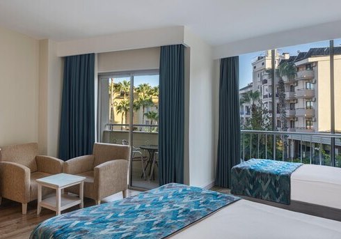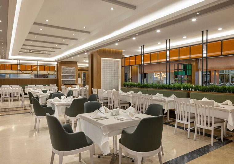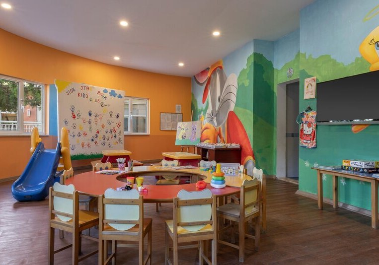 Side Star Park verbindet die Nähe zum flach abfallenden Sandstrand mit einer kompakten, klar organisierten Anlage. Pool mit Rutschen, Miniclub und All Inclusive geben Familien Struktur, während Hamam und Sauna ruhige Gegenpole setzen. Wege bleiben kurz, der Tagesablauf wirkt angenehm geordnet.
