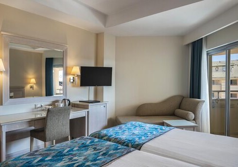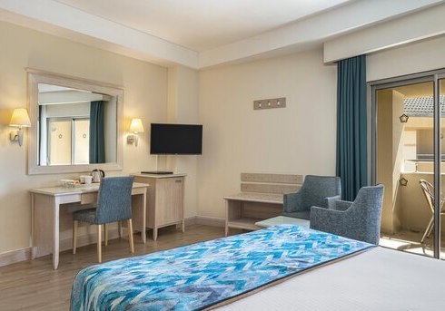 Im Side Star Park wohnt Ihr in einem Ensemble aus Haupthaus und Nebengebäude mit klarer Struktur und kurzen Wegen. Die Atmosphäre wirkt lebhaft, zugleich aufgeräumt. Familien schätzen den Miniclub und die Rutschen am Pool, Paare den nahen Sandstrand und ruhige Momente im Health-Club.