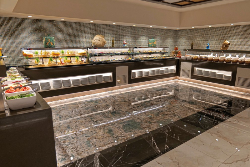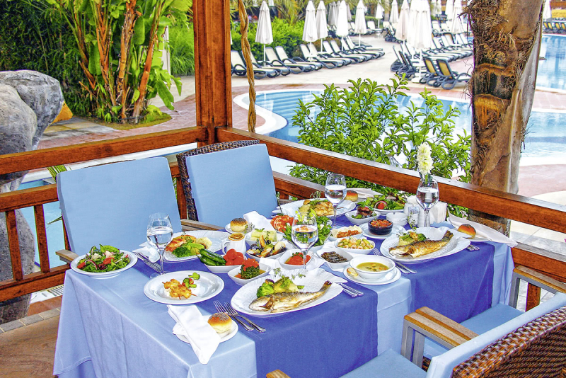 Das Royal Dragon Hotel bietet ein All Inclusive Ultra-Verpflegungspaket an. Es bietet ein Buffet zum Frühstück, Mittag- und Abendessen. Zusätzlich stehen Snacks, Kaffee und Gebäck, Eis sowie alkoholische und alkoholfreie Getränke rund um die Uhr zur Verfügung. Das Hotel verfügt über fünf Restaurants, darunter drei À-la-carte-Restaurants und ein Fischrestaurant.