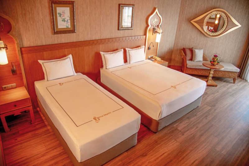 Das renommierte Royal Dragon Hotel, ausgezeichnet für seine überaus hohe Kundenzufriedenheit, besticht durch extravagante fernöstliche Architektur, auf einer Gesamtfläche von 50.000 Quadratmetern. Eine wundervolle Gartenanlage und ein hoteleigener Aquapark mit 11 Wasserrutschen bieten eine perfekte Mischung aus Entspannung und Abenteuer. Darüber hinaus erwartet die Gäste ein vielfältiges Unterhaltungs- und Sportangebot sowohl für Groß als auch Klein. Eine hervorragende Bewertung in allen Aspekten und eine exzellente Empfehlung machen das Royal Dragon Hotel zur idealen Wahl für Ihren Urlaub.