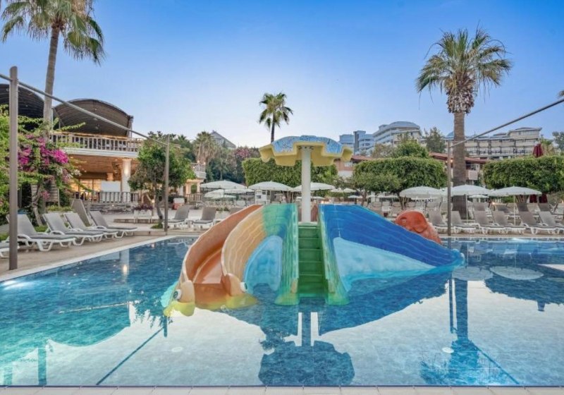Im Justiniano Deluxe Resort wohnt Ihr direkt am Sandstrand von Okurcalar, mit kurzen Wegen vom Garten zum Meer. Die Anlage wirkt übersichtlich und lebhaft zugleich: tagsüber Pool und Strand, abends Programm und Gespräche in der Lobbybar. Familien, Strandurlauber und aktive Gäste finden hier klare Strukturen, kurze Distanzen und abwechslungsreiche Angebote ohne komplizierte Wege.