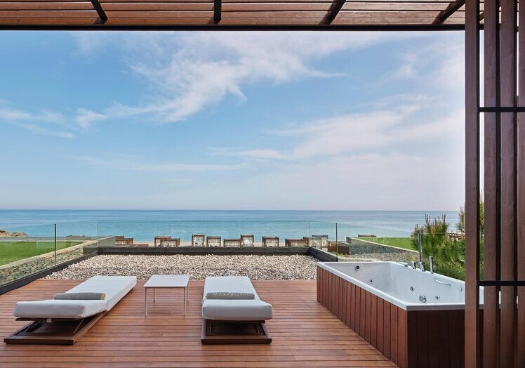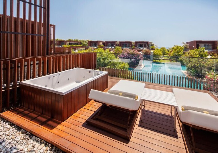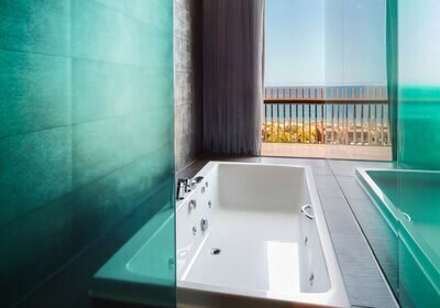 - Suite-Komfort: Große Suiten mit Whirlpool und Balkon mit Sonnenliegen.