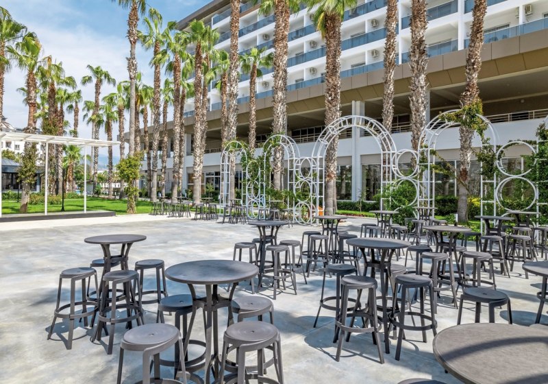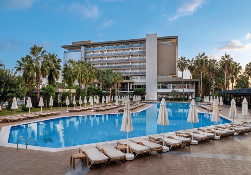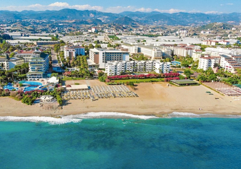 Royal Garden Beach empfängt Euch in Alanya-Konakli direkt am hoteleigenen Sand-/Kiesstrand. Die weitläufige Anlage mit Garten, Terrassen und mehreren Pools fühlt sich lebendig an, ohne unruhig zu wirken. Familien, Strandurlauber und Hochzeitsreisende finden hier klare Strukturen, kurze Wege und viele Rückzugsorte zwischen Wasserpark, Sonnenterrassen und Lobbybereichen. Highlight: Direkter Strandzugang mit eigener Strandbar und grosszügigen Badezonen.