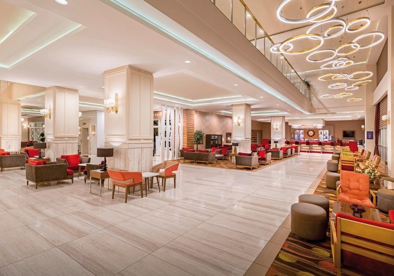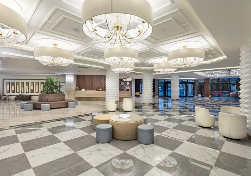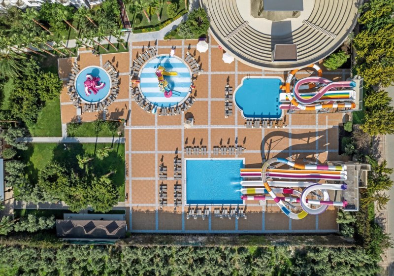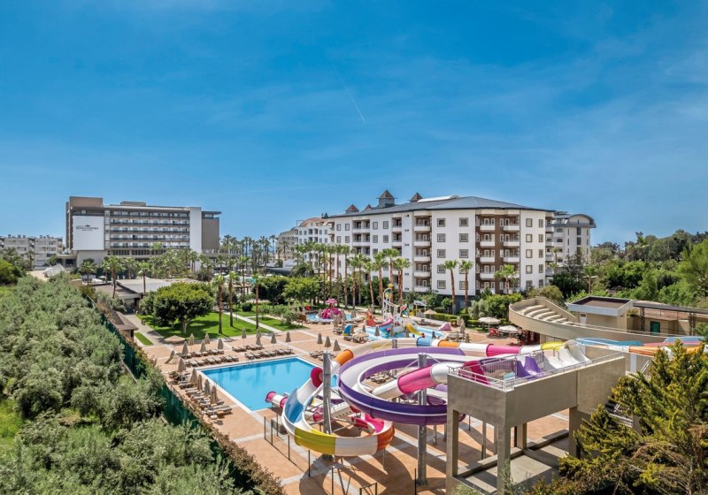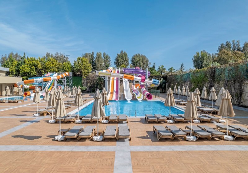 WLAN in der gesamten Anlage, Aufzüge und ein klar strukturierter Empfangsbereich mit 24-Stunden-Rezeption geben Orientierung. Vier Aussenpools, Kinderpools, Hallenbad sowie ein Wasserpark mit Rutschen schaffen Raum für unterschiedliche Badetypen. Highlight: Wasserpark mit Rutschen für Erwachsene und Kinder.