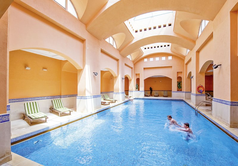 - Spa: Sauna, Dampfbad, Whirlpool und Massagen ergänzen das Hallenbad.