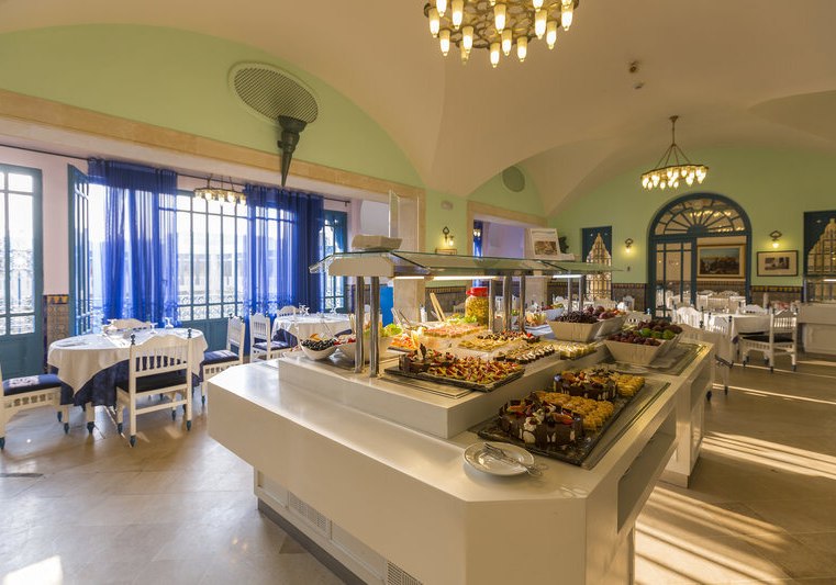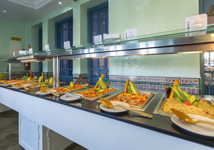Die Verpflegung ist auf All-Inclusive ausgerichtet: Frühstück, Mittag- und Abendessen, Snacks sowie alkoholfreie und alkoholische Getränke (Ausschank ab 18 Jahren). Der Speisesaal bildet das kulinarische Zentrum, ergänzt von Bars wie Poolbar, Lobbybar und Strandbar für kurze Wege zwischen Sonnenliege und Erfrischung.