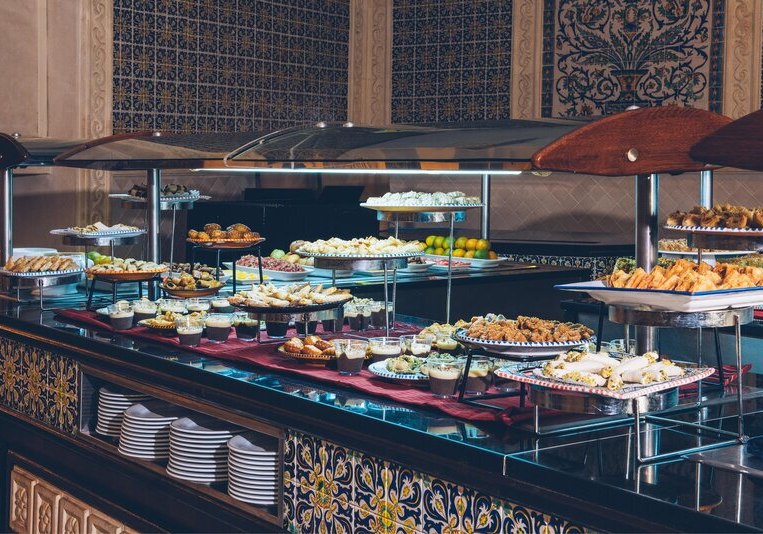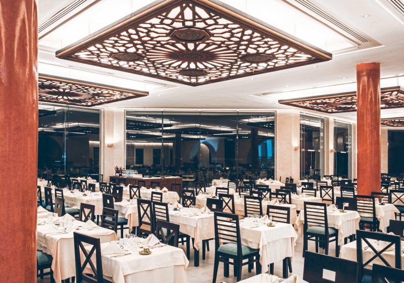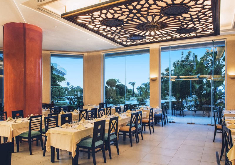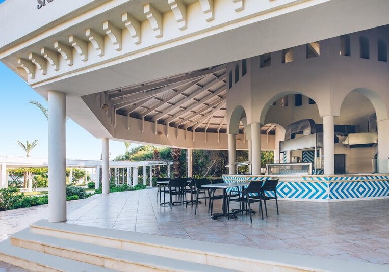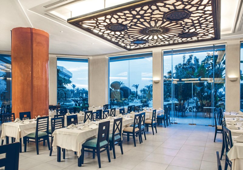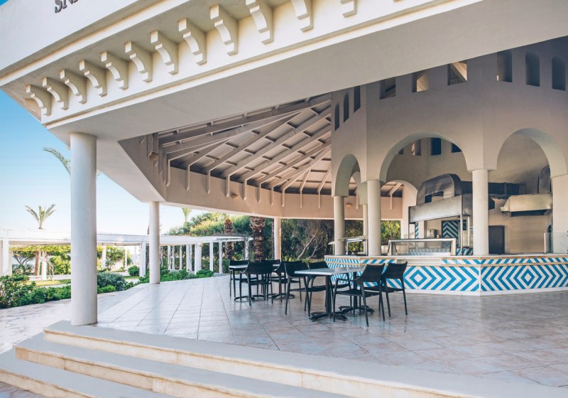 Die gastronomischen Bereiche sind sinnvoll verteilt: kurze Wege vom Pool zur Snackbar, ruhigerer Kaffeehaus-Charakter im maurischen Café, dazu Lobby- und Poolbar für die Zwischenzeit. Der Service wirkt organisiert, auch bei stärkerer Auslastung. So bleibt der Ablauf vom Sitzplatz zum Buffet oder zum Getränkeservice angenehm. Highlight: Vielfalt aus Buffet, Themenküche und maurischer Café-Kultur.