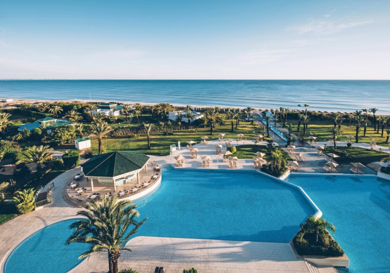Die Lage spricht für sich: direkt am Sandstrand von Mahdia und zugleich nur etwa 1 Kilometer vom Zentrum entfernt. So erreicht Ihr die Promenade und Einkaufsmöglichkeiten in kurzer Distanz, ohne die Ruhe der ersten Strandreihe zu verlieren. Eine Strandbar und die hoteleigenen Liegen mit Sonnenschirmen verkürzen die Wege vom Zimmer ans Meer spürbar.